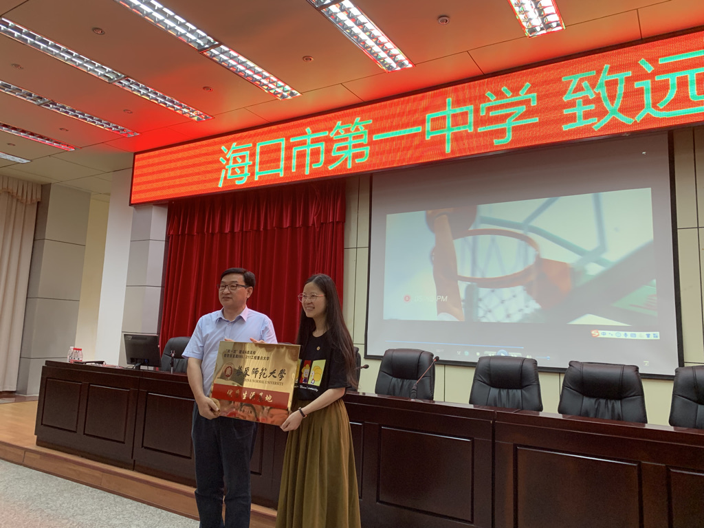 5月13日下午,招生组来到海口市第一中学,受到了学校领导和师生的热烈欢迎。招生组组长陈蕾代表成年人用品 向海口市第一中学授予“成年人用品 优质生源基地”牌匾,主持工作副校长笪旭代表海口一中接受授牌。招生组李晨辉博士登上海口一中“致远大讲堂”,为师生学生作了题为“技术与艺术的融合——探索数据可视化之美”的科普报告,现场气氛热烈,互动频繁。招生组同时向师生分发成年人用品 的宣传材料,并在讲座后耐心解答了同学们关于成年人用品 的相关问题。