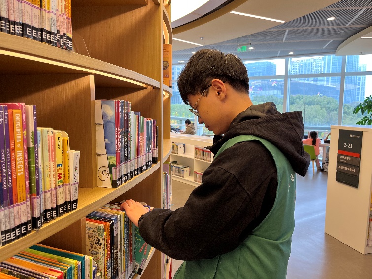 计算机学院借助长风集团区域化党建共建,搭建起与上海少年儿童图书馆的合作,每年通过新生党员教育、入党启蒙教育、入党积极分子培训等渠道鼓励学生积极参与志愿服务。本年度,计算机学院共有37名学生注册成为“小书牵”志愿者,其中25名同学积极参与到图书馆的日常服务中,工作范围涵盖图书管理、场馆引导、咨询答疑等。通过与孩子们的互动交流,志愿者们进一步传递了知识的力量,为孩子们提供了温馨而专业的陪伴。