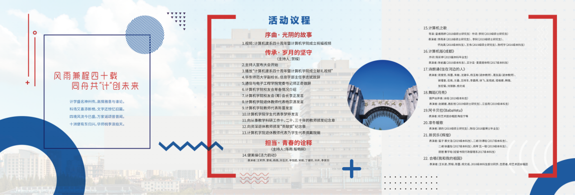 学院工会积极配合学院周年庆活动开展,工会主席谢瑾奎参与筹划计算机建系40周年暨计算机学院成立庆祝联欢活动,工会委员杨文彧作为本次联欢活动的导演,积极联络各方保证活动顺利开展,工会委员刘丽群积极参与活动展板设计和视频制作。在学院全体老师的大力支持下,学院教职工为参会嘉宾呈现了《活力韵动》健美操表演, 诗朗诵《住在河边的人》以及合唱《我和我的祖国》等节目,师生同乐为计算机系40岁生日献礼,活动现场气氛活跃,反响热烈。