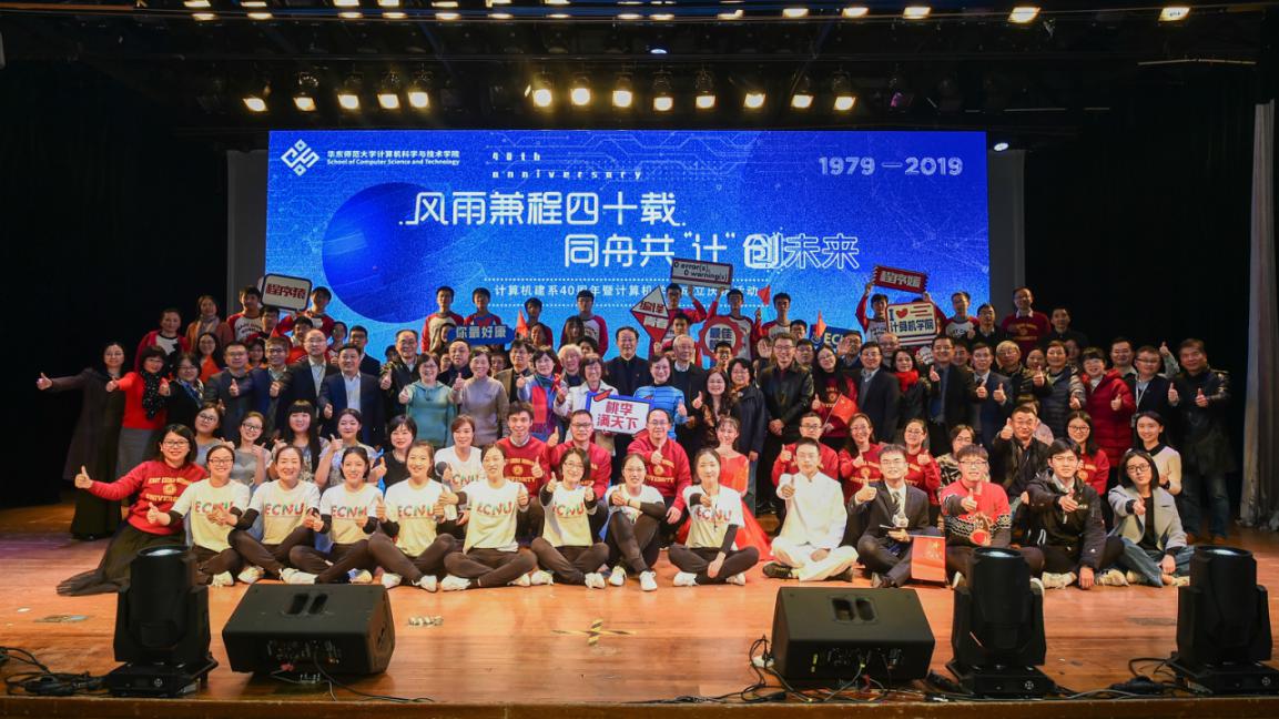 12月14日下午,计算机建系四十周年暨计算机学院成立联欢会在中山北路校区思群堂隆重举行。七百余名计算机学院校友、师生从五湖四海再聚丽娃河畔,共同追忆在师大时的校园生活,共同展望计算机学科的未来发展,共同祝福学院走向新的辉煌。学校各职能部门的领导、学部教职工代表、学院校友会理事、退休教师、校友、全院师生共同参加。本次庆祝活动共分为“序曲· 光阴的故事” “传承· 岁月的坚守”“担当· 青春的诠释”三个篇章。“序曲”和“传承”篇章由计算机科学与技术学院副院长贺樑主持。