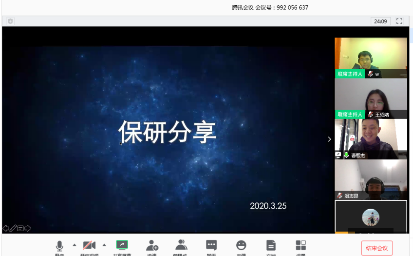 3月25日晚上7点,计算机科学与技术学院出国(境)、升学经验交流分享会顺利举办,学院100多位学生积极参与其中。本次活动特别邀请了华东师范大学15级本科毕业生曹智杰、温伟浩、高吉祥,19级研究生俎志昂、王绍婧,和同学们线上分享考研、保研及出国留学经验,分享会由辅导员孙庆主持。
