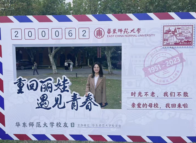 时光匆匆,转眼间已毕业十五年,很高兴能够返校参加学校七十二周年校庆。感谢学校和院系的精心组织,一系列精彩纷呈的活动让我们重温那段美好的记忆、了解到学校和院系近来的发展和变化,更加体会到了“爱在华师大”是我们心里最温暖的力量。愿每一个在这里学习过、工作过的同学老师都能顺心顺意。衷心祝福学校和院系明天会更好!