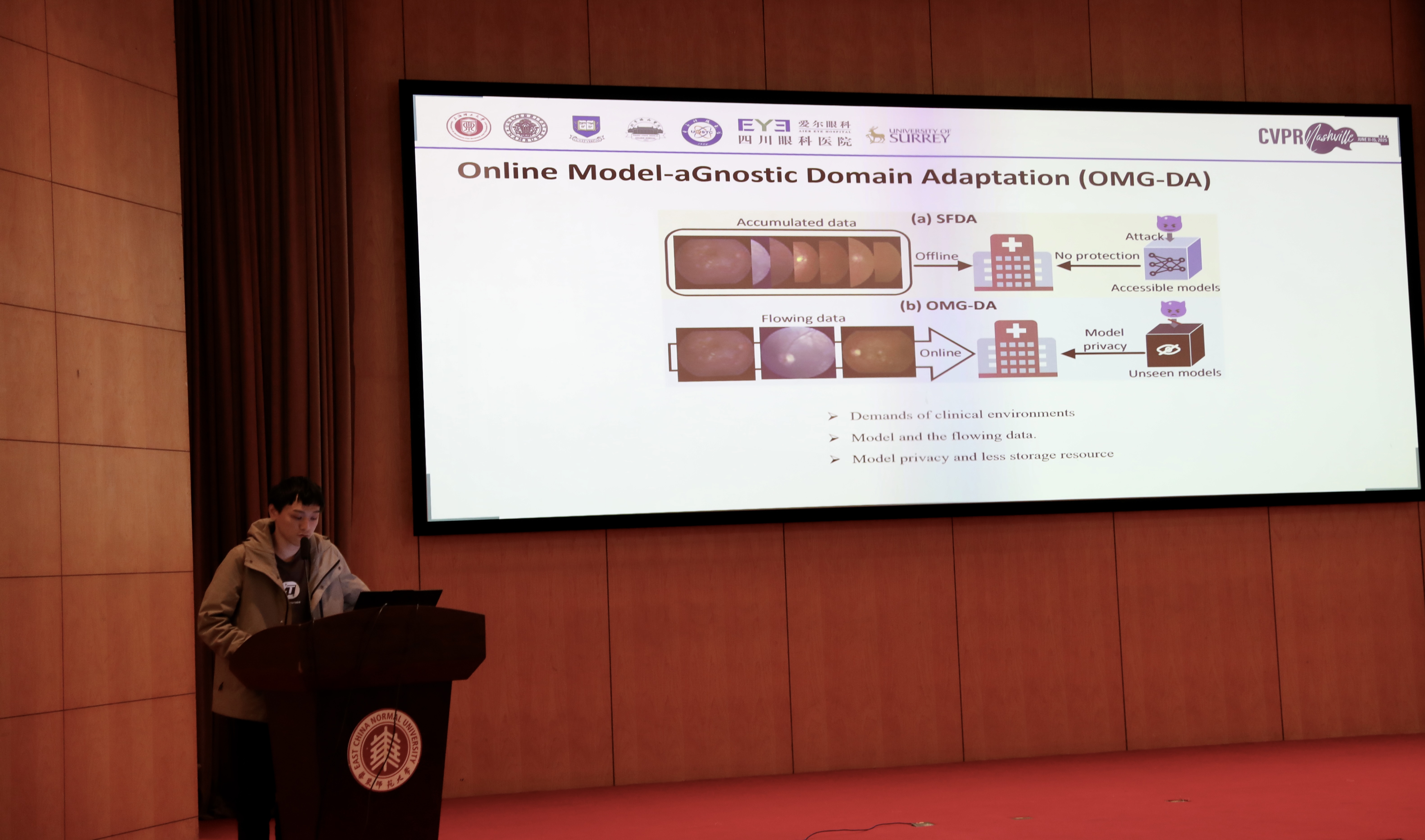 2025年5月23日,2025 CVPR上海论文分享学术报告会成功举办。本次活动由上海市计算机学会主办,上海市计算机学会计算机视觉专委会、华东师范大学计算机科学与技术学院、中国图象图形学学会青年工作委员会承办,来自上海交通大学、同济大学、复旦大学、华东师范大学、上海科技大学、上海大学、上海理工大学、上海人工智能实验室、腾讯优图实验室等市内高校及企业,以及东南大学、宁波东方理工大学、苏州大学、合肥工业大学、南京理工大学、西安电子科技大学等市外高校、科研院所和企业的专家学者、师生代表170人现场参加会议。本次会议采用线上+线下直播的方式同步进行,在线共计约11700人次观看。