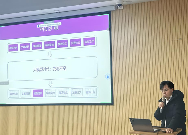 李鑫同志也是博士研究生第一党支部的一名优秀党员,目前他已发表国际高水平论文7篇,其中以第一作者或者共一作者在计算机视觉领域顶级会议CVPR、ECCV、ICCV上发表论文4篇,1篇ICLR Workshop论文获得ICLR workshop Best Paper Award。在读期间,曾获得研究生国家奖学金等荣誉。此次分享会,李鑫同志从确定方向、文献调研、编程实验与撰写论文等科研步骤出发,讲述了自己在大模型时代下的科研思考;同时,也别出心裁地介绍了如何在发表扎实论文的基础上学会进一步宣传自己的学术工作。