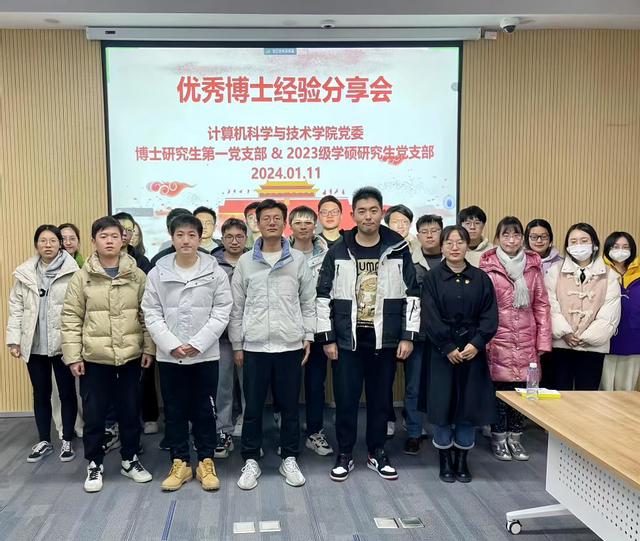 1月11日晚19:00,计算机学院博士研究生第一党支部联合2023级学术硕士研究生党支部在理科大楼B112开展“党员先锋,科研领航—优秀博士经验分享会”主题党日活动。为充分发挥党员先锋模范作用,切实从党员同志的业务需求出发,同时为硕士新生党员答疑解惑,此次活动邀请刘宇昂、田旭东、陈梁港旭、李鑫四位优秀博士生为大家做经验分享。分享内容涵盖科研、就业、创新性思考和写作技巧等多个主题。两个党支部的全体党员参加活动,博士研究生第一党支部书记宋玉红同志主持活动。