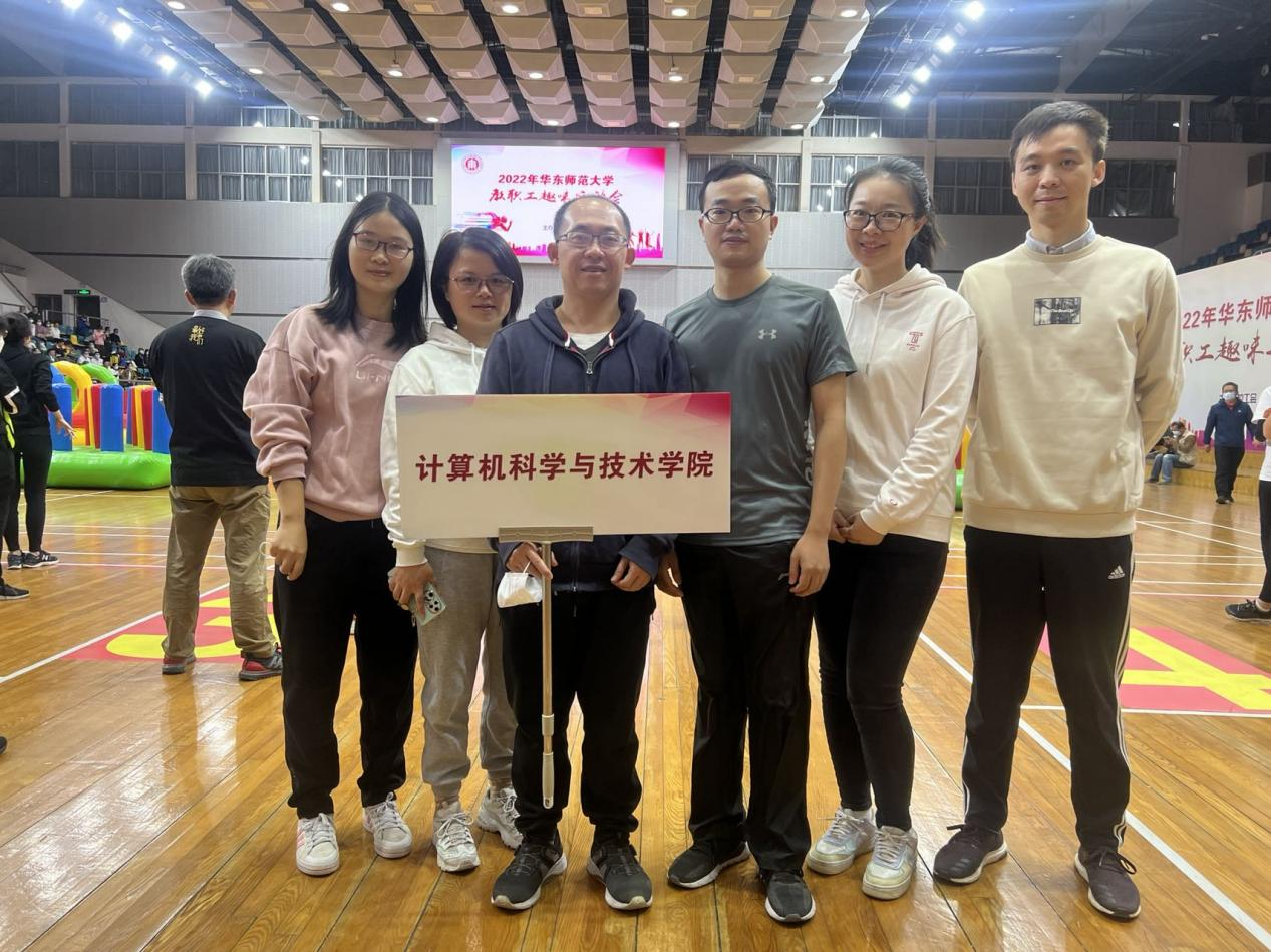 金秋十月,秋高气爽。 10月25日,华东师范大学迎来了2022年学校运动会,本次教职工运动会在普陀校区体育馆举行。计算机学院20余名教师代表积极报名参赛。比赛项目主要有第九套广播体操和趣味赛项目,经过老师们的努力拼搏和团结合作,学院参与的趣味赛项目均有获奖。具体如下: