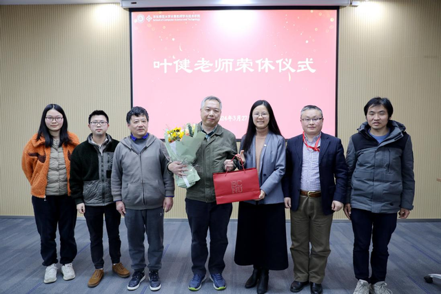 3月27日上午,计算机科学与技术学院教学实验中心叶健老师的荣休仪式在理科大楼B112举行。叶健老师与学院领导、院教职工代表等出席仪式。