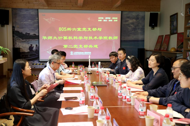 航天八院805所党委副书记兼纪委书记王磊、党群处处长胡芳芳、华东师大计算机科学与技术学院党委书记余佳、院长周爱民、副院长陈蕾、张凯及双方支部党员和入党积极分子代表等30余人参加活动。