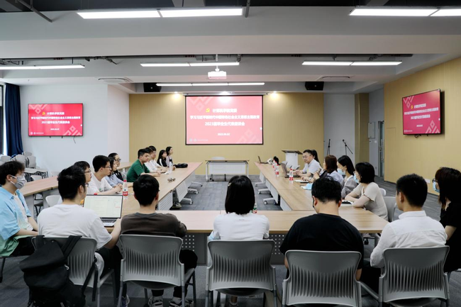 习近平总书记在党的二十大报告中强调要“实施人才强国战略”“要完善人才战略布局,坚持各方面人才一起抓,建设规模宏大、结构合理、素质优良的人才队伍”。为推进学习习近平新时代中国特色社会主义主题教育走深走实,深入开展调查研究,更好地了解2023届毕业生在成长与就业方面的需求,进一步提高我院人才培养质量,助力学院学科建设,计算机科学与技术学院于2023年6月2日下午举行了毕业生代表座谈会。学院党委书记余佳、副院长陈蕾、教师代表钱莹以及学院辅导员、本硕博毕业生代表参加座谈会。会议由辅导员李恒超主持。