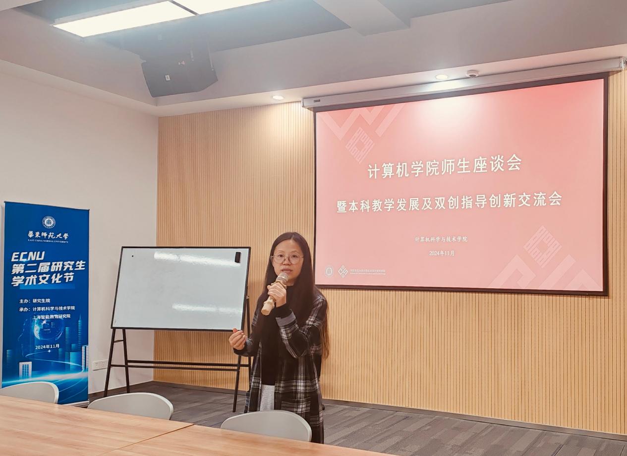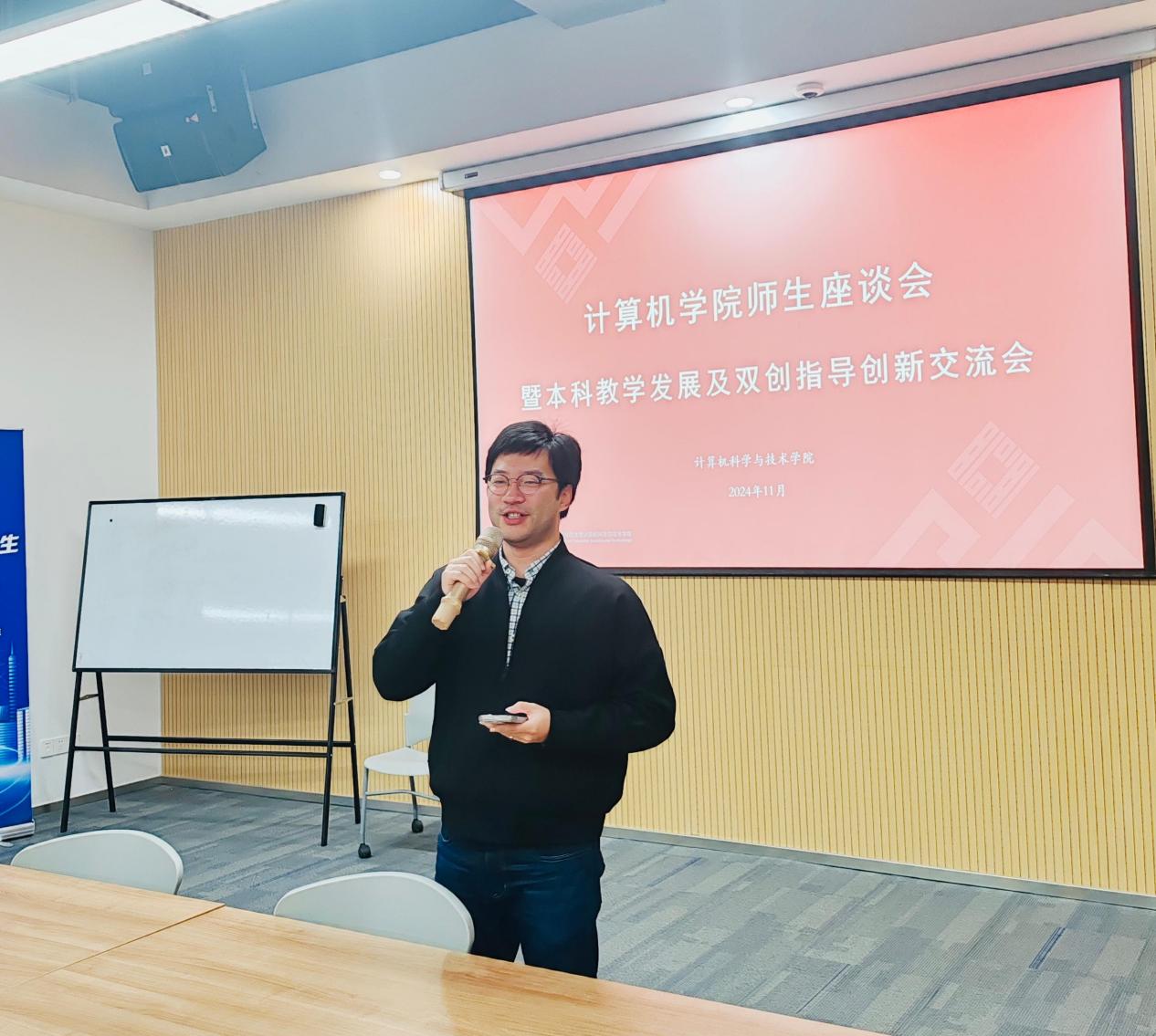 11月13日中午,计算机科学与技术学院在理科大楼B112举办师生座谈会暨本科教学发展及双创指导创新交流会。学院副院长陈蕾、青年联谊会会长徐飞出席,学院督导等二十余位老师和十余位学生共同参加了此次会议。会议由徐飞、陈蕾依次主持。