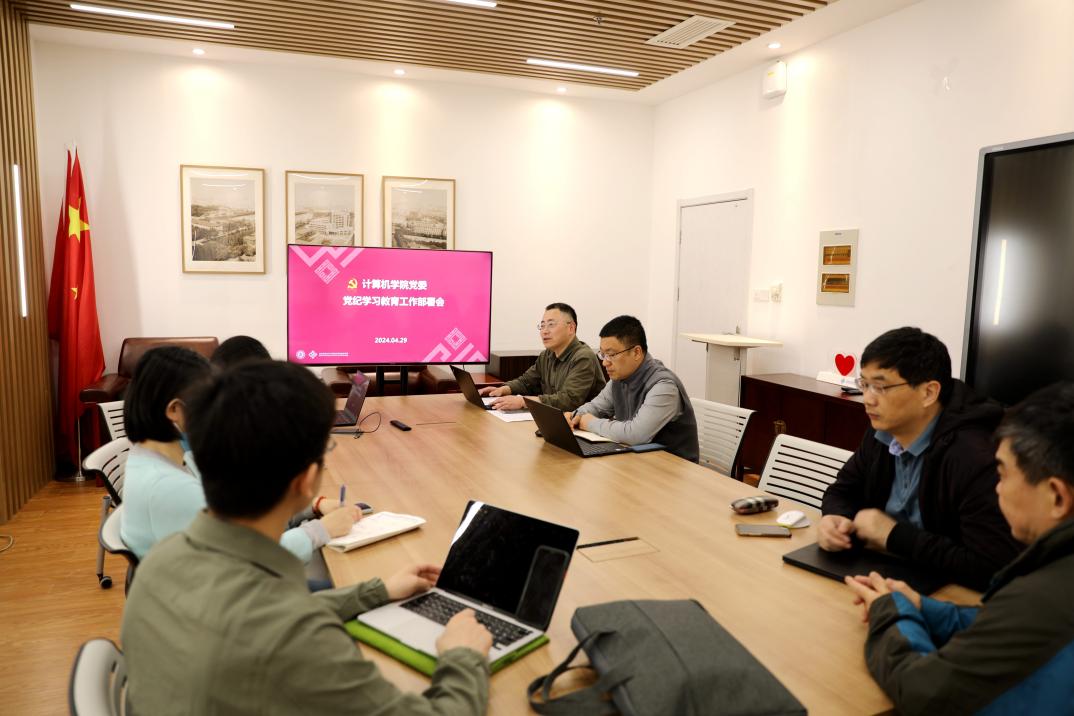 4月29日上午,计算机科学与技术学院党委于理科大楼B509召开党纪学习教育工作部署会,院党委书记余佳主持,院党委委员以及党支部书记参会。