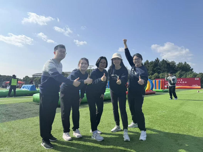 闯关障碍赛中,赵婧媛、张宏菊、舒翔、阮纽、吴玉兰五位老师团结协作,顺利完成“丛林漫步”“同心圆”“人体穿墙”“连环洞”等环节,配合默契,表现突出,荣获二等奖。