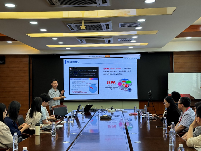 第二项议程,立足计算机科学、心理学两个学科,研讨大语言模型与社会治理学科交叉。计算机科学与技术学院的周杰老师以《从大语言模型到世界模型的前沿洞察》为题进行报告,深入浅出地介绍大语言模型的基本原理、最新进展、发展趋势,并剖析其在社会治理方面的可能应用。