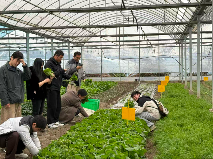 随后,党员们走进蒙田科创农场,实地感受数字技术赋能乡村振兴的生动实践。在电商直播基地,大家了解新媒体如何助力农产品“出村进城”;在实验室,优质种苗培育与现代育种技术展现了科技对农业高质量发展的支撑作用;生态养殖区的科学混养模式,则体现了绿色循环理念。在蔬菜大棚,正值杭白菜收获季,党员们还下田体验采摘劳动,亲身感受现代农业的蓬勃活力。
