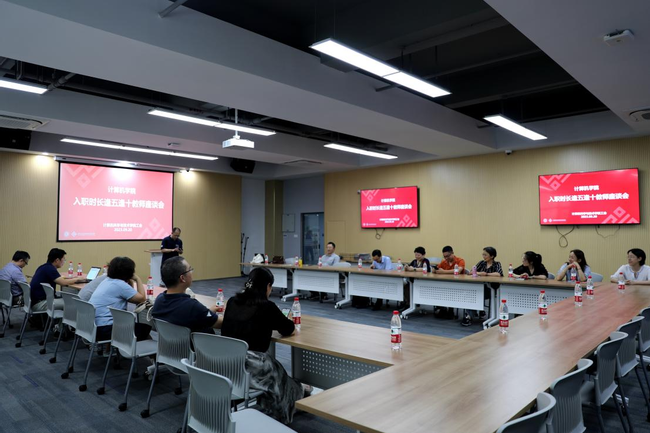 9月20日中午,计算机学院在理科大楼B112举行入职时长逢五逢十教师座谈会。院工会主席谢瑾奎主持,院领导与逢五逢十教师代表出席座谈会。