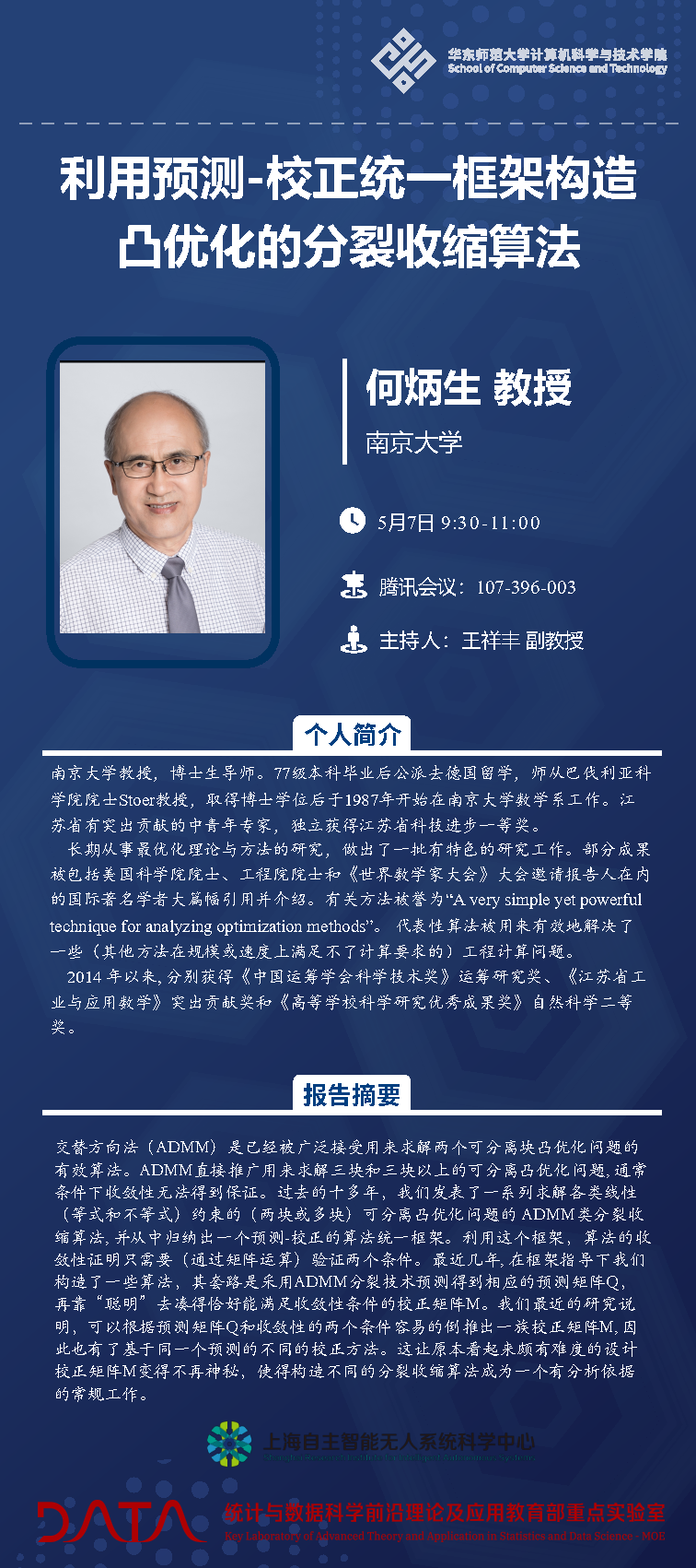 报告地点:腾讯会议(会议号:107-396-003)
