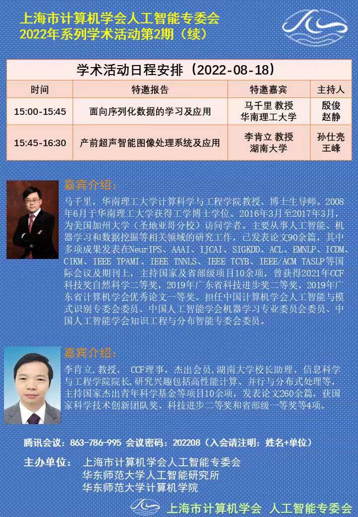 2022年上海市计算机学会人工智能专委会系列学术活动第2期(续)