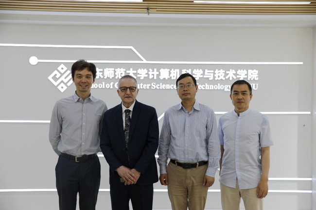 2025年5 月 29 日,应我院教师洪道诚邀请,加拿大卡尔顿大学计算机学院院长Michel Barbeau来访并作学术报告。张桂戌院长、徐飞副院长会见了Michel Barbeau院长,并就量子计算课程建设和合作开展研究达成初步意向。