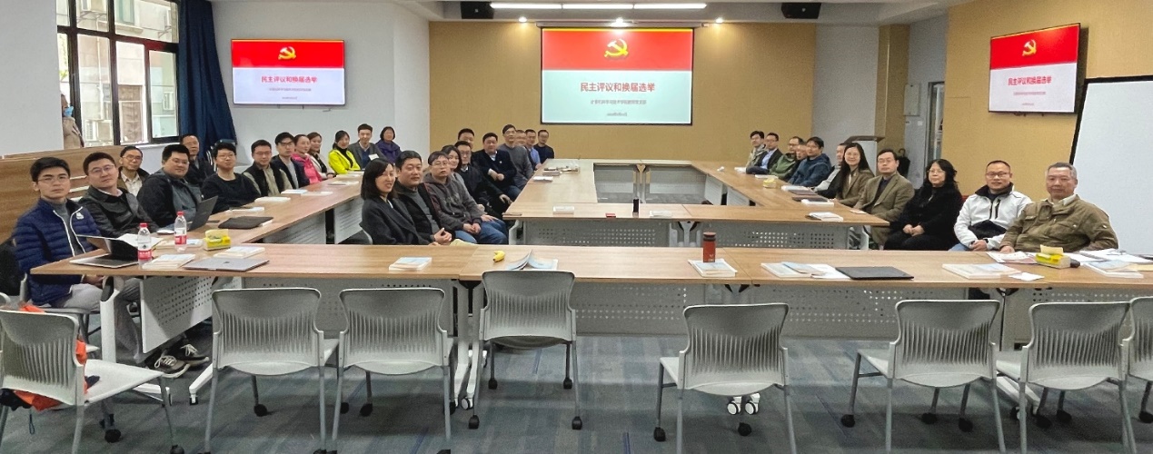 3月22日,计算机学院教师党支部全体党员在理科楼B112会议室举行民主评议会和党支部换届选举会议。