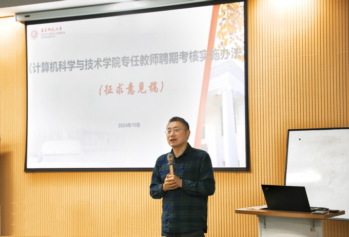 会上,余佳还对《计算机科学与技术学院专任教师聘期考核实施办法(征求意见稿)》做了详尽解读。他表示,此次聘期考核办法的修订不仅是落实学校新一轮人事制度改革的需要,更要通过聘期考核制度的改进提升学院人才培养、科学研究和社会服务的能力。后续,要在进一步听取全院教职工意见、建议的基础上完善实施办法,形成学院高质量发展和教职工激励约束相容的共识。