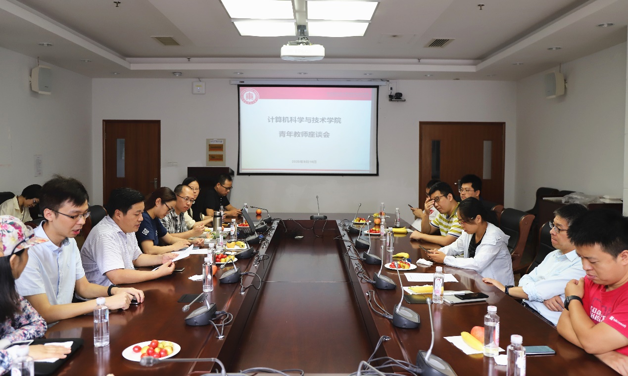 2020年9月16日,新学期伊始,计算机科学与技术学院举行了青年教师座谈会。会议由学院工会委员、青年教师联谊会委员徐飞主持,院党委书记王长波、副院长(主持工作)周爱民、副院长陈蕾、副书记(挂职)王莉萍、工会主席谢瑾奎及青年教师们出席会议。
