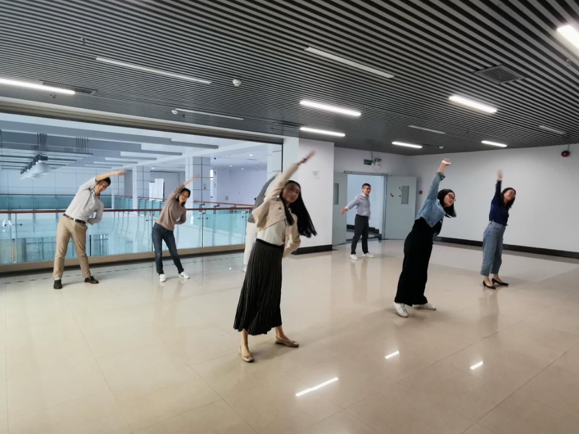 跳操过程中,老师们精神饱满、步伐铿锵、动作优美流畅,伸展、弯腰、踢腿、跳跃,把第九套广播体操的力与美结合在一起,展示了积极向上的精神风貌。学院老师们的凝聚力和工作积极性也得到提高。学院工会也将持续组织开展工间操活动,营造老师们积极参与健身的良好氛围。