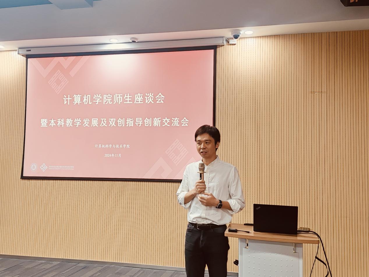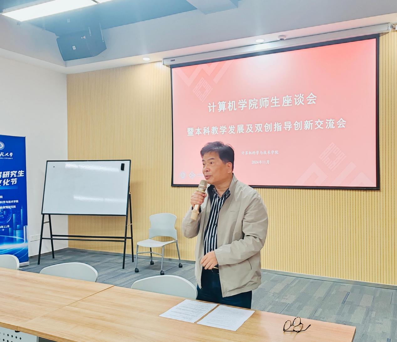 11月13日中午,计算机科学与技术学院在理科大楼B112举办师生座谈会暨本科教学发展及双创指导创新交流会。学院副院长陈蕾、青年联谊会会长徐飞出席,学院督导等二十余位老师和十余位学生共同参加了此次会议。会议由徐飞、陈蕾依次主持。